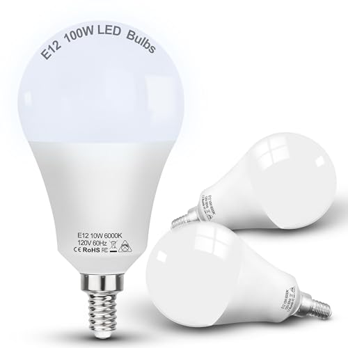 Specifcations: Round E12 A19/A60 LED Ceiling Fan Light Bulbs, 100w Equivalent, 6000K Daylight White,E12 Small Candelabra Screw Base Globe Shape,10W 1200lm for Chandelier Pendant Wall sconces Vanity ,Non Dimmable, 85CRI, AC120V