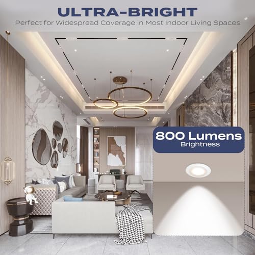 ?Dimmable & Ultra Bright ? Experience ultimate lighting control with these 4-inch recessed can lights, offering seamless dimming from 10-100%. Compatible with most household LED dimmer switches, including Lutron and Leviton, these lights provide smooth, flicker-free illumination to suit any mood or activity. Enjoy an impressive 800 lumens of brightness while using only 11 watts, all without any humming noises – perfect for creating your ideal ambiance while saving energy.