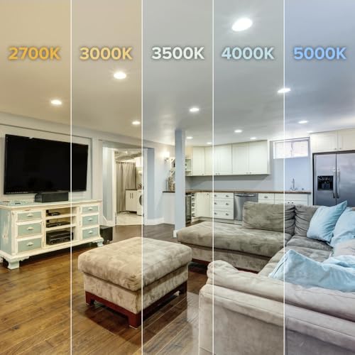 ?Versatile Color Temperature?The Brightlux LED Ceiling Light Disk Downlight features selectable CCT with 5 color temperature options (2700K/3000K/3500K/4000K/5000K), allowing you to easily customize your lighting environment. Simply use the switch to choose and lock in your preferred color temperature, adapting your space for various activities or moods without replacing the fixture. This versatility ensures you'll always have the perfect lighting, whether you need warm, cozy ambiance for relaxation or cool, energizing light for productivity.