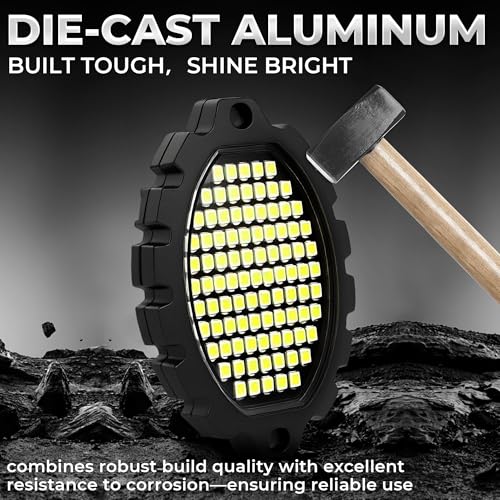 ?Premium Metal Aluminum?Constructed with a durable die?cast aluminum body, these led rock lights for trucks offer excellent heat dissipation, stable performance, and long?lasting use. The rugged metal housing is shockproof, impact?resistant, rustproof, and corrosion?resistant, ensuring reliable operation even in harsh outdoor conditions