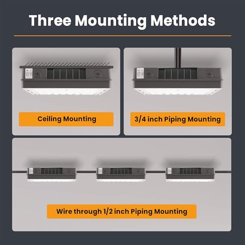 Long lifespan: Enjoy LED Canopy Ceiling Light benefits of longer lifespan 50000hrs, Our led canopy area light used non-yellowing pc lens cover, waterproof structure with rapid heatsink, larger light emitting degree, say no to frequent maintenance.