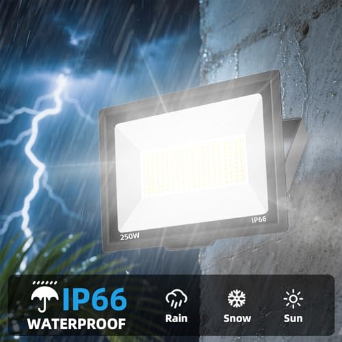 ?Super Bright & Energy Saving? The Gopretty 250W LED Flood Light delivers an impressive 30,000 lumens of 6500K daylight white brightness with a wide 120° beam angle. Using advanced Epistar LED chips, it replaces traditional 1000W halogen lights while saving up to 85% on electricity bills.