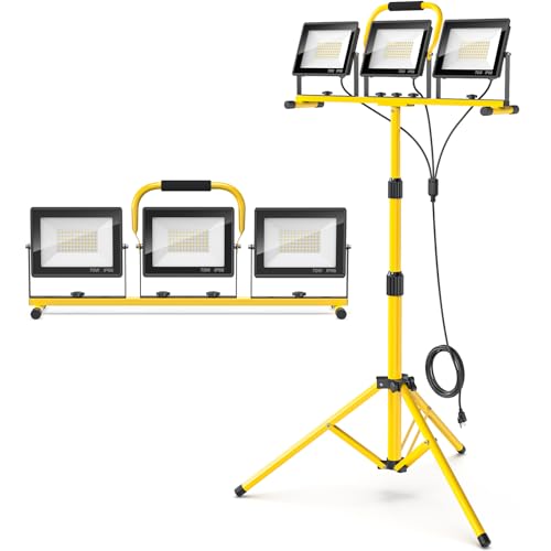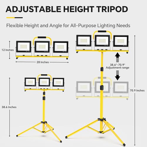 ??Heavy-Duty Adjustable Tripod?The sturdy metal tripod stand extends up to 6 ft for elevated lighting, which offers stability on uneven surfaces. The telescoping standing work light can be easily folded for transport or storage. Comes with a 16.5-foot industrial power cord that minimizes distance limitations and offers a wider usage range.