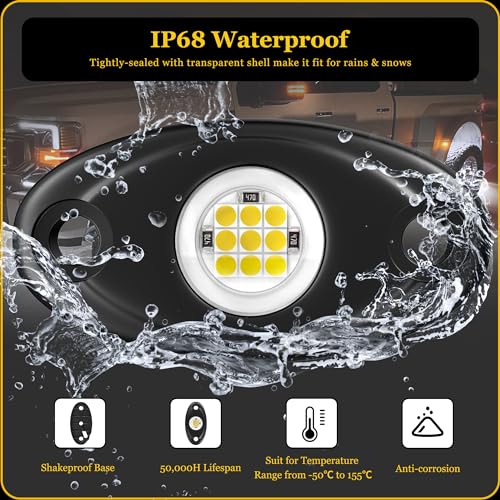 High Value: Heefrole White Rock Lights offer unrivaled value, blending cutting-edge technology with exquisite design. Each pod radiates a brilliant, long-lasting glow, ensuring durability and sophistication. Illuminate your car with confidence, where quality meets excellence.