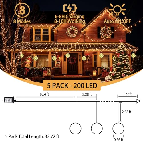 ?Attachable Indoor/Outdoor Lights?Each string of globe christmas tree lights features 5 globes ( 7.84"-40 LED ), with a 2.62 ft length drop.
