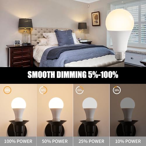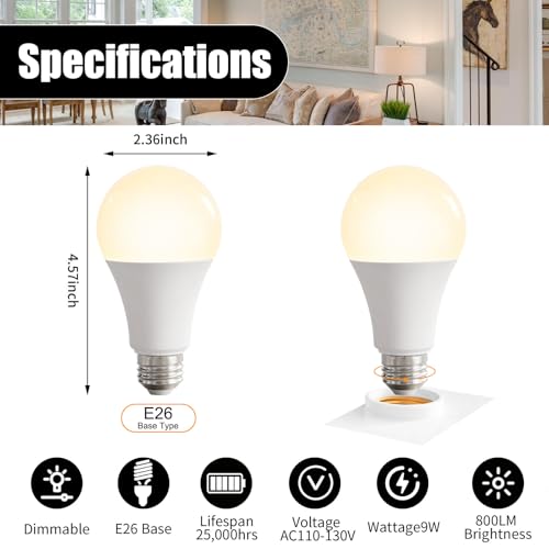 High CRI 80+: Experience vivid and natural colors with our high CRI 80+ dimmable A19 bulb. The high-quality light output remains stable throughout its lifetime, creating a comfortable and bright atmosphere in your home. Say goodbye to eye fatigue and protect your eyesight with our reliable lighting solution.
