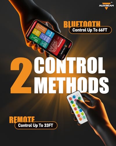 APP & REMOTE CONTROL:? Take full command via the ?Cool Motor Bluetooth App? or ?the included RF remote!? Choose from ?180 dynamic lighting modes?, sync lights to ?music beats (Music Mode)?, or activate ?voice-responsive lighting (Voice Mode)?—where LED rock lights react instantly to your ?voice pitch and rhythm?. Use ?Group Management? to effortlessly sync multiple AUXBEAM lights compatible with Cool Motor—all from one app