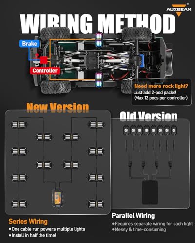 EXPAND YOUR ROCK LIGHT SYSTEM:? Simply expand your existing setup to 6 pods/ 8 pods/ 10 pods/ 12 pods rock lights with these 2-pod packs. To ensure optimal performance, limit each controller to a maximum of 12 pods