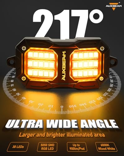 217° ULTRA WIDE ILLUMINATION:? Engineered with ?30 high-intensity SMD LEDs? per unit, these rock lights deliver a brighter, wider coverage with a ?217° beam angle?. Perfect for off-road adventures, they illuminate every corner with unmatched clarity