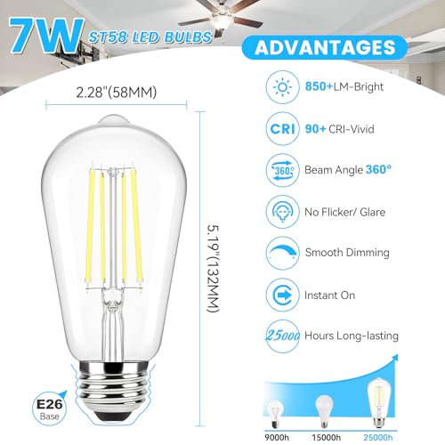 ?High Brightness & Realistic Color?Our ST58 LED bulb boasts an impressive output of 850+ lumens, providing ultra-bright lighting with a 360° beam angle to illuminate every corner of your home. With a Color Rendering Index (CRI) of 90+, these Edison bulbs ensure that colors appear vibrant and true to life, enhancing the visual appeal of your space. With our light bulbs, a small change can create a significant difference