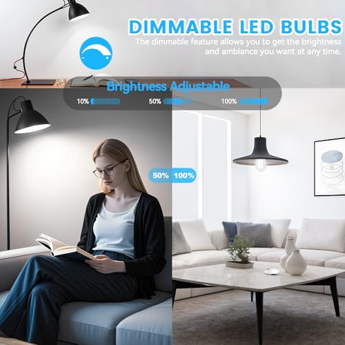 ?Smooth & Stable Dimming?Our dimmable LED bulbs offer seamless 0-100% dimming capability, giving you precise control over brightness levels. Compatible with over 95% of dimmers on the market, these E26 led bulbs ensure a flicker-free experience without any buzzing sounds. Whether you need bright task lighting for your dining table or soft ambient light for a cozy evening, you can easily adjust the brightness to create the perfect atmosphere for any occasion