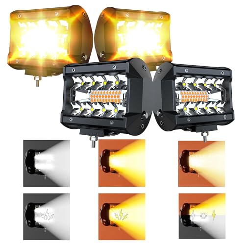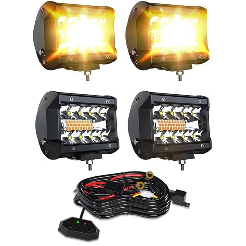 ?Package Included? 4PCS 4'' 60W Amber White LED Strobe Light Pods, Universal Mounting Brackets, Switch and Wiring Harness. Please buy with confidence,If you have any questions, please feel free to contact us.