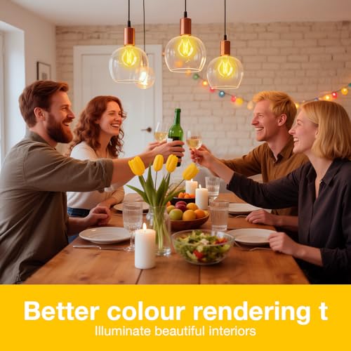 ?Classic Vintage Design & Versatile Use??Inspired by Thomas Edison’s original filament bulb, our A19 LED light bulbs blend retro charm with modern efficiency. Perfect for chandeliers, ceiling fans, pendant lights, sconces, lanterns, or any E26 base fixture. Ideal for bedrooms, living rooms, dining areas, bathrooms, porches, and entryways.