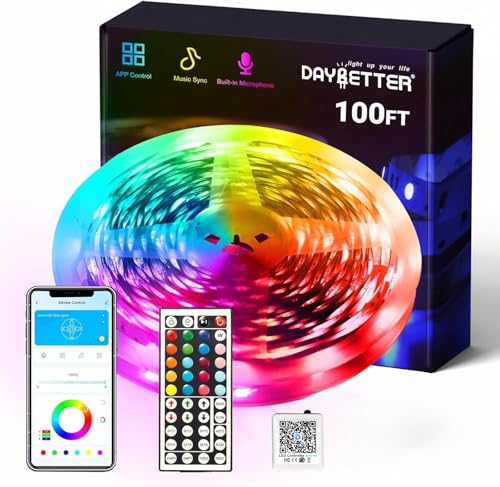 [APP Control & IR Remote Control] This 100FT led strip lights support both APP and 24Keys IR remote control, which allow you to change lights color and modes very conveniently, best led light strips for bedroom, kitchen, living room bar and party decoration