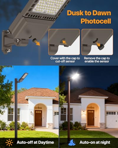 Automatic Dusk-to-Dawn Photocell – Built-in sensor turns light on at dusk and off at dawn. Black cap allows manual disable with the black cap covered. This automatically activates reduce the lighting cost and give a smart outdoor illumination solution.