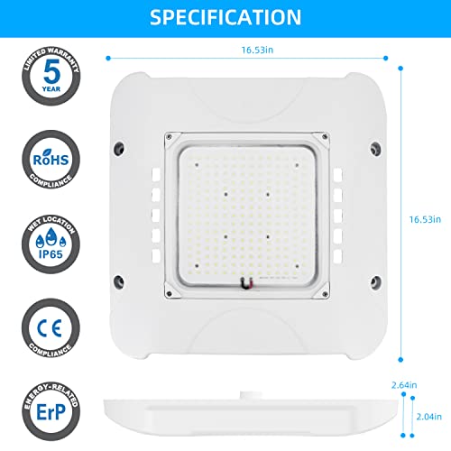 Super bright & Energy saving - Canopy light with the super-bright 5850 lumens and 5700K light color, Replace a 500W incandescent or HID light, save your money on energy bill, save up to 70% on the cost of lighting your industrial space .