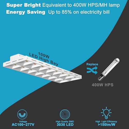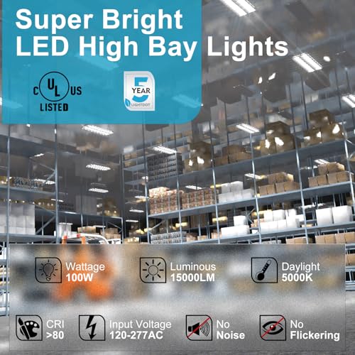 2024 NEW UPGRADE ???? Upgrade Commercial Grade LED High Bay Light, high energy-efficent LED driver, 100-277V, more stable and no flicker. These high bay lighting fixtures ensure high performance for more than 50,000-hour of continuous use or 20-years when on every day for 8-hours/day. Special process milky cover to avoid yellowing, soft brightness and comfortable light, eye care.
