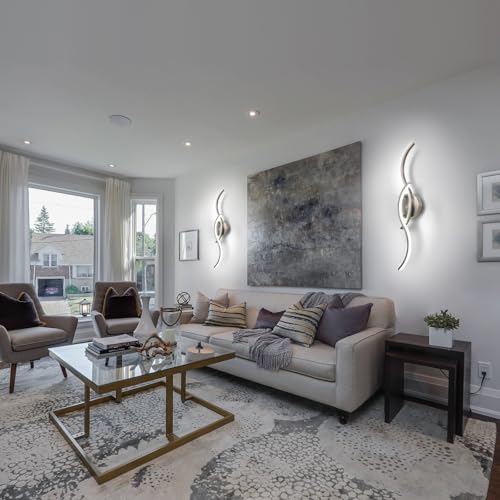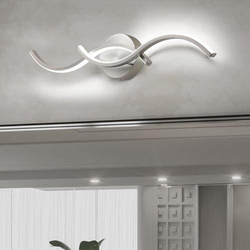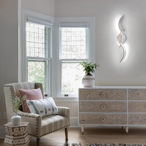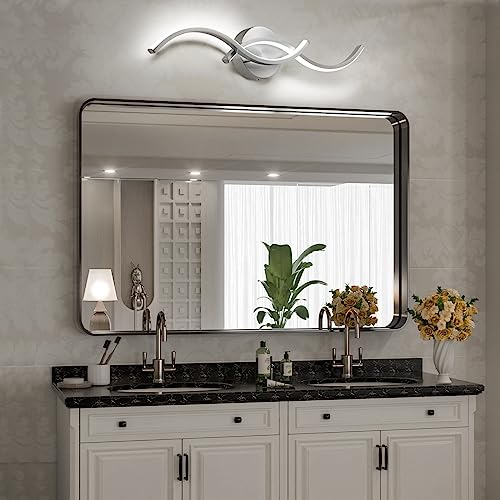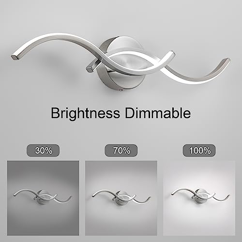 EDISLIVE Modern Wave LED Vanity Light Dimmable Modern Led Vanity Light Fixtures Linear Wall Sconce with Acrylic Strip Shade?24 in LED Vanity Lights for Bathroom Bedroom Makeup Living Room, NICKEL