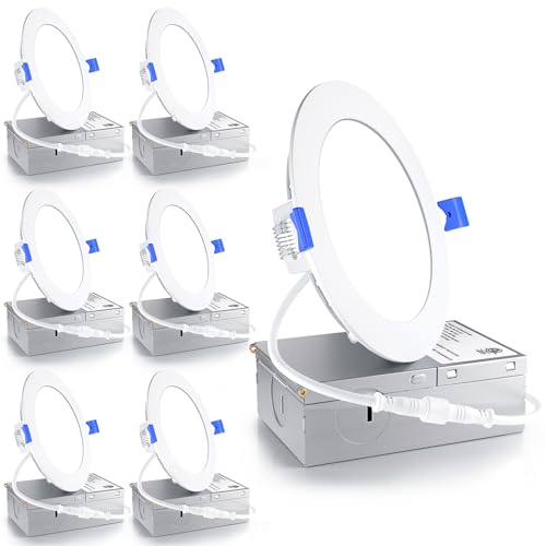 5CCT in ONE - Choose from 2700K, 3000K, 3500K, 4000K, 5000K with a simple click on the side of the J-box, Ensenior's canless recessed light 4 inch provides perfect lighting for your bedroom, living room, kitchen, bathroom, home office and other rooms.
