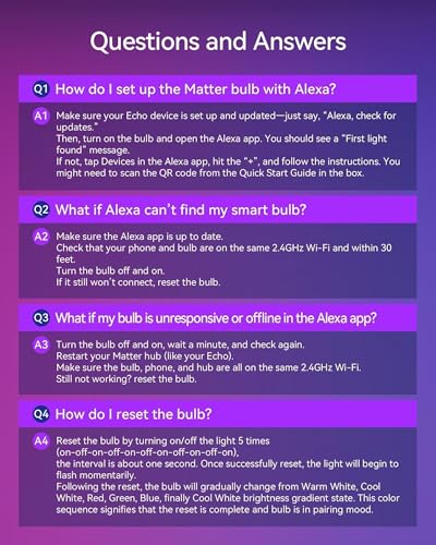 ?Powerful Smart Matter?Matter smart light bulb is compatible with all Matter platforms. Instead, connect directly through certified smart home platforms like Apple Home, Alexa, or Google Home for seamless control of all your Matter devices. (Tips: Only supports 2.4GHz WiFi , not compatible with 5GHz)