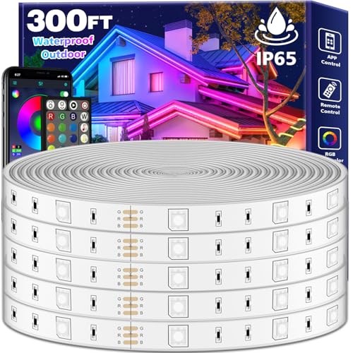 FBZ 300Ft Outdoor Waterproof LED Strip Lights,Music Sync RGB IP65 Led Lights with App Control and Remote,Color Changing Waterproof Led Rope Lights for Outdoor,Balcony,Roof,Garden,Stairs Party (300FT)