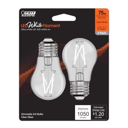 Feit White Filament A15 E26 (Medium) Filament LED Bulb Soft White 75 Watt Equivalence 2 pk