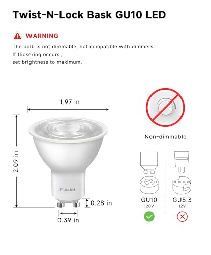 Top Quality & Longer Lifespan: Fionaled provide 3years warranty to all our products, this GU10 bulbs made with upgraded aluminum and fireproof plastic to make sure the safety, besides, the LED's use cree chip to ensure the liefspan is over 10years. Instant On, No delay, No mercury, no UV/IR light; safe for your family and better for the environment.