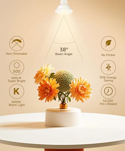 38° Precision Spotlighting · Glare-Free: Narrow 38° beam angle mr16 bulb ensures focused illumination ideal for accent lighting, with zero flicker or buzzing