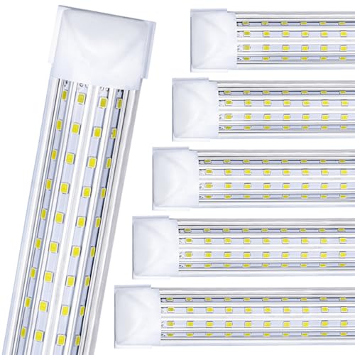 ?PATENTED DESIGN?- This 110W 8ft LED garage ceiling light gives 300 degree lighting with 4 rows 8ft led strip lights, about 50% more brightness than flat type shop led lights, and about 30% more brightness than U shape 8 foot led shop light.