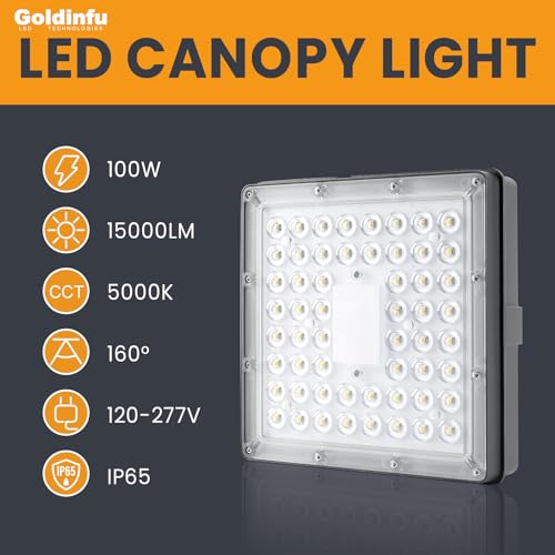 High Efficient Canopy Light: Our 100w led canopy light provide 15000lm with high brightness led chip, Large LED surface will deliver a larger and more efficient output lighting in led canopy lights outdoor usages ,idea for Garage Shop Gas Station Carport Warehouse etc.
