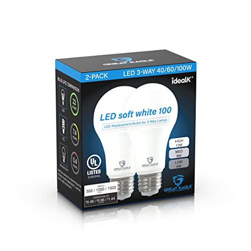 ENERGY EFFICIENT 3-WAY LED BULB - Uses 4/8/12W to yield equivalent illumination of 40/60/100W Incandescent and Halogen bulbs. BRIGHT 500/100/1500 lumens