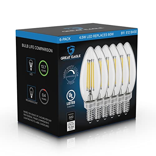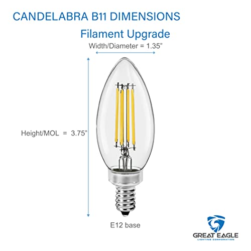 Top Rated UL Listed Dimmable Candelabra B11 Filament Globe LED Light Bulb for chandeliers, lanterns, sconces, strings lights, and decorative light fixtures.