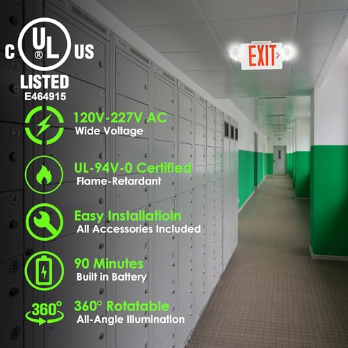 Flexible Installation Options: This hardwired LED exit sign supports ceiling and backside mounting. Includes an extra faceplate for double-sided display to enhance flexibility. All mounting parts are packed inside the housing for easy installation.