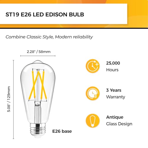 With over 95+ higher CRI index, a lot better than ordinary led light bulbs in the market, this 60 watts ST19 edison bulb produces light that enhances the way you see colors around you.