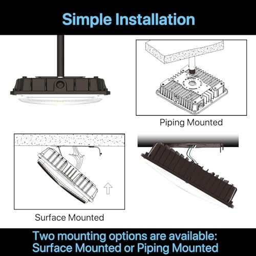 Surface & Pipe Mount: HYPERLITE canopy led lights is easy to install: 1.surface mounted with J-box .2.pendent with 3/4 inch conduit(Both not Included)