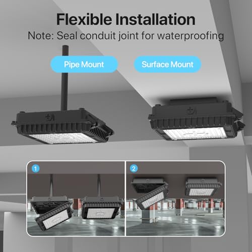 Quick Installation - Surface mounting and pipe mounting are both available on HYPERLITE led canopy lights outdoor. Note: Pls make waterproof treatment on the conduit joint to avoid water ingress.