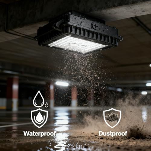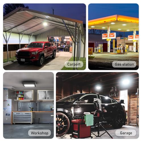 Industrial Quality - Solid die-casting aluminum housing and durable powder coating paint provide superior quality against wear, fade and corrosion. Ideal led canopy ceiling light for Carport,Garage,Gas Station,Shop,Workshop,Building Entrances indoor and outdoor applications.