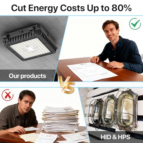 Bright with 80% Energy Savings - Super bright 5000K daylight 13000 lumens only consume 100W. Pefect led canopy light to replace traditional MH & HID lights and save your bills up to 80%.