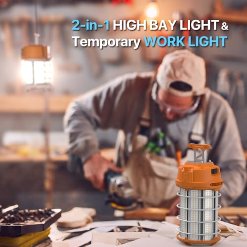 Durable Construction: Our temporary work light features a built-in durable driver and high-quality LED chips, ensuring a lifespan of over 50000 hours. The stainless steel guard provides excellent impact and vibration resistance, enhancing durability and protection. The aluminum heat sink ensures superior heat dissipation.