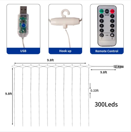 ?IP20 Waterproof &Perfect Decorations?9.8FT x 9.8FT indoor fairy curtain lights can cover most windows, curtains, walls,pergolas. IP64 WATERPROOF which is perfect for kids‘s girl's children's room decorations, doors, floors, ceilings, bedroom, livingroom, around the house, Christmas, Birthday party, Valentine's Day, Holidays, outdoor patio, wedding, photoshots proposal backdrop, shopping center etc