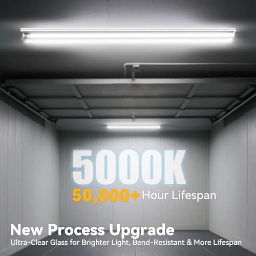 ?18W Energy Saving with 5000K Daylight White?With high-transparency glass housing, these 18W LED tubes deliver 2400 lumens of bright 5000K daylight white light—55% more efficient than traditional 40W fluorescent tubes. The glass design ensures superior light diffusion, no yellowing, and long-term durability for garages, offices, and commercial spaces.