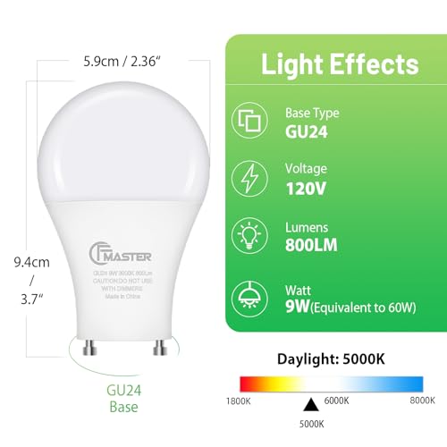 ?????UPGRADE TO LED?Each GU24 LED bulb provides 800 lumens, 9 watts (Equivalent 60W), and 5000K Daylight, of crisp, quality lighting that is perfect for any space and brighter than standard 60 watt bulbs.