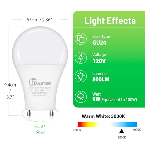 ?????INSTANT ON?GU24 bulbs have no delay and no charging time, have light right when you need it with full brightness immediately 800 Lumens RA>80 Non-Flickering Non-Buzzing. A simple energy-saving solution to your everyday home lighting.