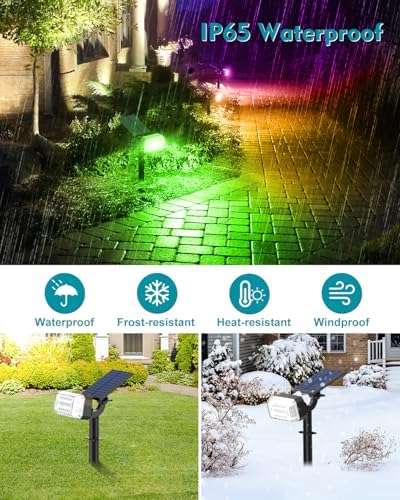?Durable and Weather-Resistant with IP65 Waterproof Design?Kipeini solar landscape spotlights are crafted from high-strength ABS material and can work efficiently in temperatures from -4°F to 140°F. IP65 waterproof rating ensures that your garden stays beautifully illuminated even in harsh weather conditions like snow, frost, rain, strong winds, heat-resistant and etc.