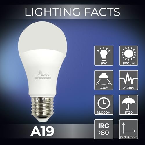 LED ATOMANT 6 Pack A19 LED Bulb 9W 800 Lumens, 2700K Soft White, 110V E26 Base (60W Incandescent Replacement)