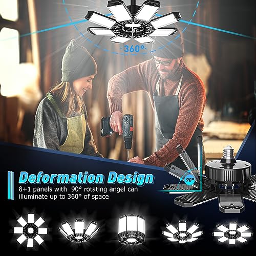?BOOST YOUR GARAGE?A deformable garage light is a smart person’s first choice. Simply installing one ISKYDRAW brightest garage ceiling light in an existing outlet is enough to brighten up the entire room due to the 260W 26000 lumen efficient light output.