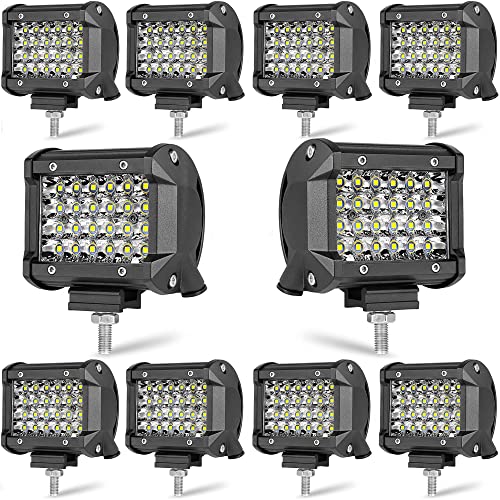 ?4 ROWS SPOTLIGHT CUP DESIGN?Our 4Inch led pods Build-in 24 PCS high intensity 3W LED chips provide 12000lm 6000k super bright white light,that light your road and keep safety for the darkness offroad driving.