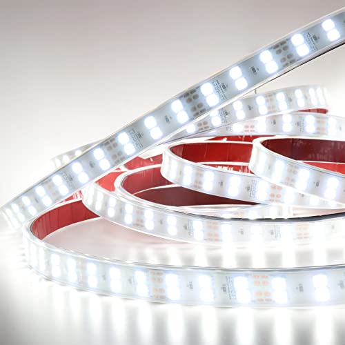 Bright SMD 5050 LEDs: With 600 LEDs and a 6500K color temperature, 0-100% dimmable, you'll enjoy an incredibly bright illumination with improved color quality. The white LED strip lights for bedroom can light up your dark rooms, cabinets, mirrors and any corners with ease.