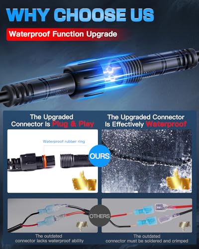 ?Outstanding Waterproof Performance?Silicone Ring Sealed PC Lamp Cover and Silicone Side Cover Gasket Sealed Body,IP68 Waterproof & Dustproof.The Off Road Wiring Harness With Scres Down Cap Connectors for Waterproof.All Full Sealed Design to Allow the 12in LED Bar Light and 4 Inch LED Cube Pods Works in Any Harsh Weather and Conditions:Rain,Dency Fog,Snow,Mud,Wading,Even Frozen.Extend Over 80,000H Lifespan.