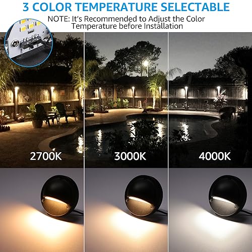 ?????2700K/3000K/4000K Selectable: The adjustable light color perfectly matches the existing light color in your courtyard. If you don't know what color of light is more suitable for your courtyard, LEONLITE 3CCT Deck Lights are also your best choice
